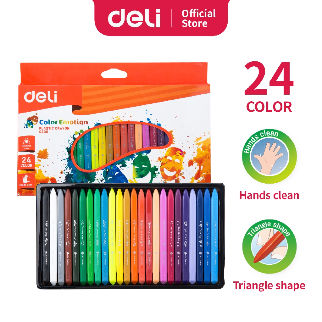Deli Krayon Sekolah 24 Warna Cerah Bentuk segitiga Sumber : shopee.co.id